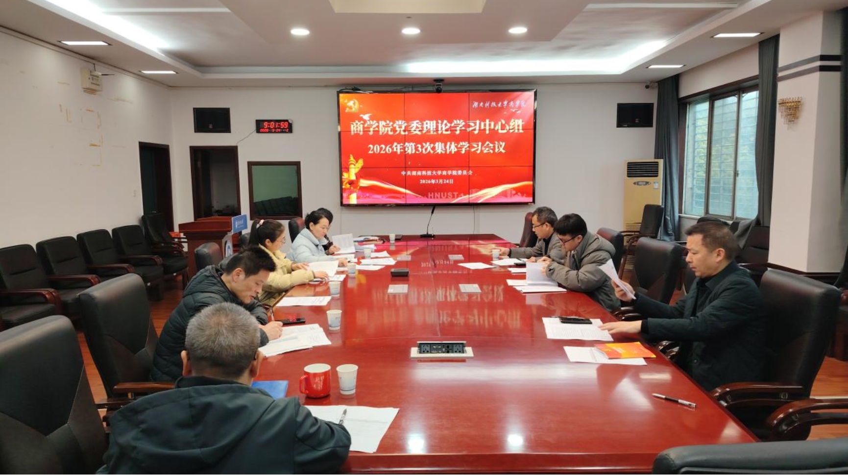 2026年3月24日,学院召开三教301会议室,召开全国两会精神传达学习会暨院党委理论学习中心组第3次集体学习。院党委书记叶文忠主持会议并对学习贯彻工作进行部署,全体院党委理论学习中心组成员参加学习。