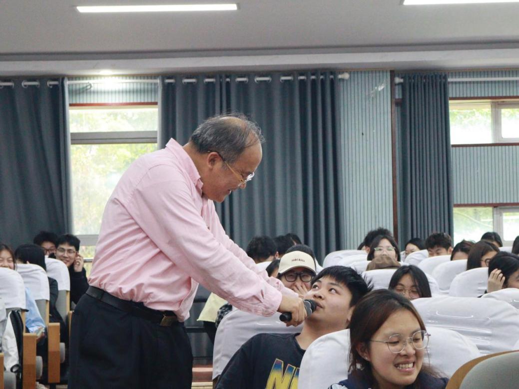 会上,潘建国从“四厚”理念切入,系统阐释成功的关键要素。围绕这一框架,他提出,唯有四者兼备,方能在职业发展中行稳致远。结合广州酒家百年老字号经营管理实践,潘建国教授以经典案例为支撑,深入解读传统企业转型升级路径。他指出,广州酒家坚持“餐饮+食品”两翼协同发展,在保留传统餐饮服务的同时,大力发展食品加工业务,实现品牌延伸与规模扩张;在老字号创新方面,积极推动非遗技艺传承与创新发展,为传统文化活化贡献力量;面对数字化浪潮,实施“1+2+4”AI+数字化战略,赋能传统饮食产业转型升级。潘教授还与在场师生围绕“中西方学生时间管理差异”展开交流互动。